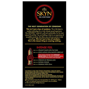 Experience a whole new level of pleasure with Skyn Intense Feel Condoms. Made from premium, non-latex material, these condoms offer a natural feel that enhances sensations. The intense feel technology provides increased stimulation and a closer connection with your partner. Elevate your sexual experience with Skyn.