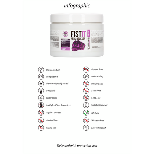 Anal Relaxer Water-Based Lubricant by Fist It is a water-based lubricant designed for numbing sensations, perfect for reducing discomfort during intense play. Dermatologically tested and compatible with latex condoms, it offers a safe and pleasurable experience.