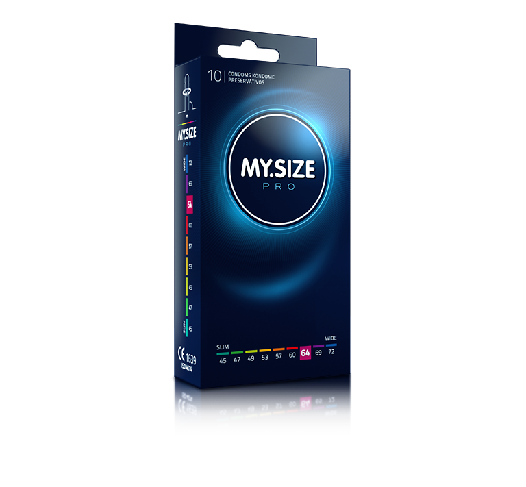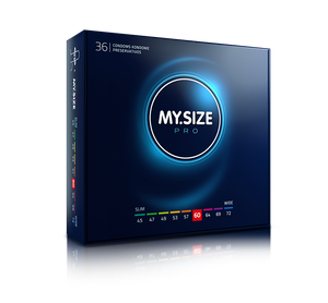 Indulge in the unparalleled pleasure of MY.SIZE Pro 64mm Condoms, available in packs of 10 or 36 condoms.