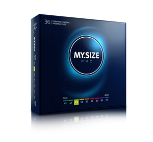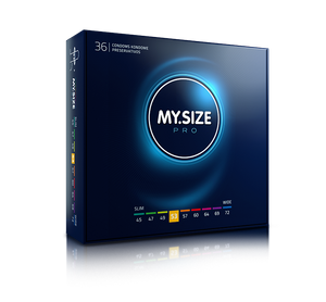 MY.SIZE Pro 53mm Condoms are available for purchase in packs of 10, or 36 condoms.