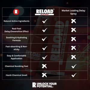 Unleash your confidence with Reload Delay Spray — a powerful Delay Spray using natural ingredients, designed to give you more control and stamina. Packed with the active forces of Ginger Root Oil, Spilanthes Acmella, Mentha Arvensis Leaf Oil, and Aloe Barbadensis Leaf Juice, it delivers precision and performance with a natural desensitizing effect and soothing relaxing comfort.